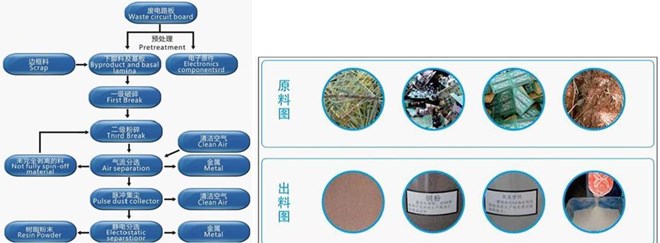 該線生產(chǎn)工藝采用干式物理粉碎和分選,完全干式物理系統(tǒng);其技術先進,生產(chǎn)過程中不產(chǎn)生新的問題,如對環(huán)境的污染等。無廢氣和污水產(chǎn)生,無噪音污染,主要核心設備采用除塵器,車間生產(chǎn)噪音達到國家安全生產(chǎn)標準,粉塵通過過濾系統(tǒng)達到政府排放標準、安全防護等工藝設計。