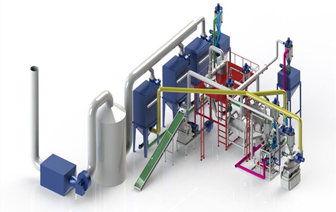 設(shè)備配置: 生活垃圾破碎回收設(shè)備、垃圾粉碎機、渦電流分選機、布袋除塵器