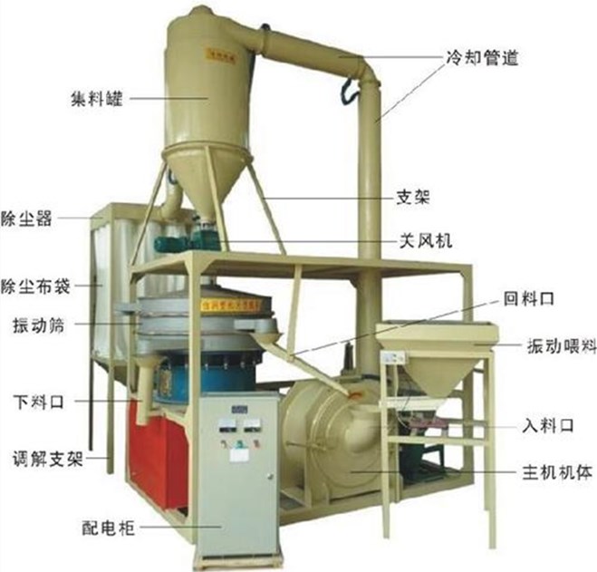該鋁塑磨粉機是本廠自行研制的新型磨粉機,其特點如下: