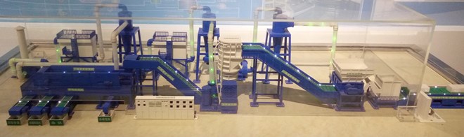 廢銅鋁散熱器再利用生產(chǎn)線采用物理破碎分選再利用方式,首先物料通過一破機(jī)進(jìn)行粗破碎,再到二破機(jī)進(jìn)行粉碎,粉碎成3cm大小的物料經(jīng)過磁選分選出鐵,再到氣流分選中進(jìn)行風(fēng)選。結(jié)構(gòu)新穎,外形美觀、獨(dú)特,產(chǎn)能大;全線由PLC程序控制,一次投料,多機(jī)完成;設(shè)有自動(dòng)停機(jī),超載自動(dòng)報(bào)警裝置。該處理線的成功開發(fā),大大地解放了生產(chǎn)力,提高了金屬的再利用質(zhì)量,同時(shí)又再利用了鐵的優(yōu)點(diǎn),重要地是在處理過程中有效地解決了粉塵的溢出,減少了對(duì)空氣的污染。